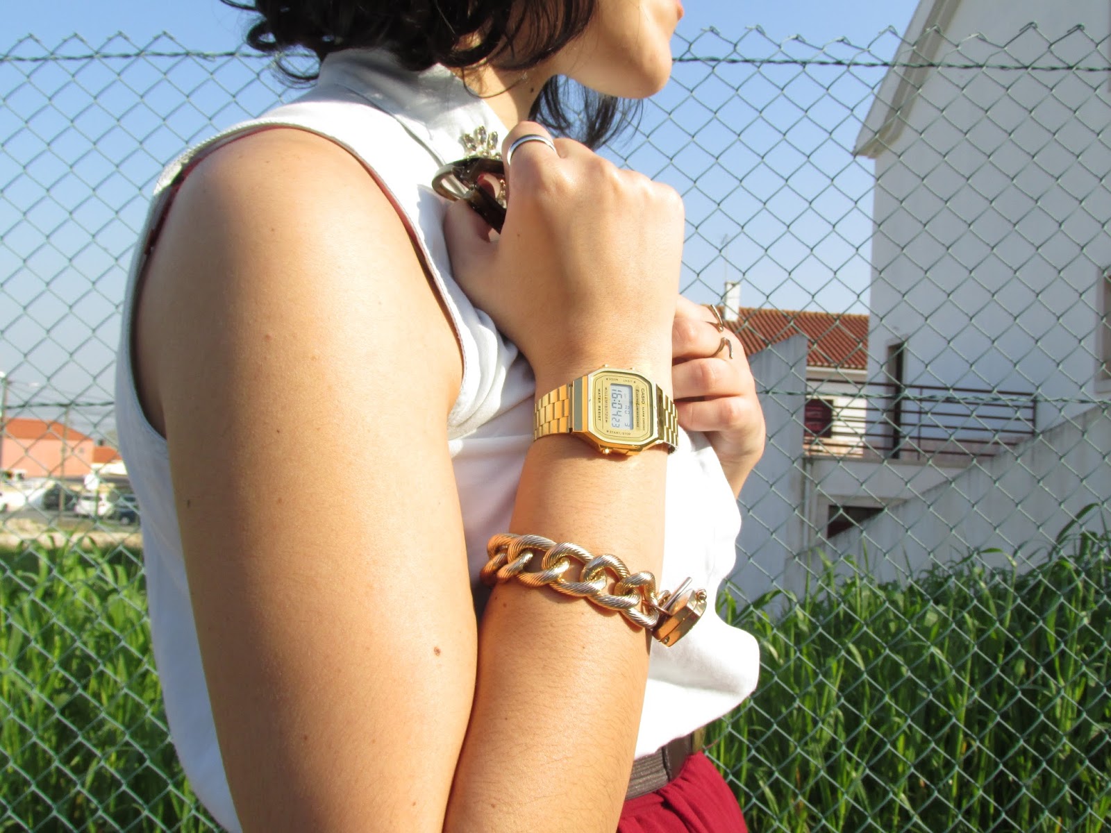 Botins Bershka - Pulseira River Island - Relógio Cásio